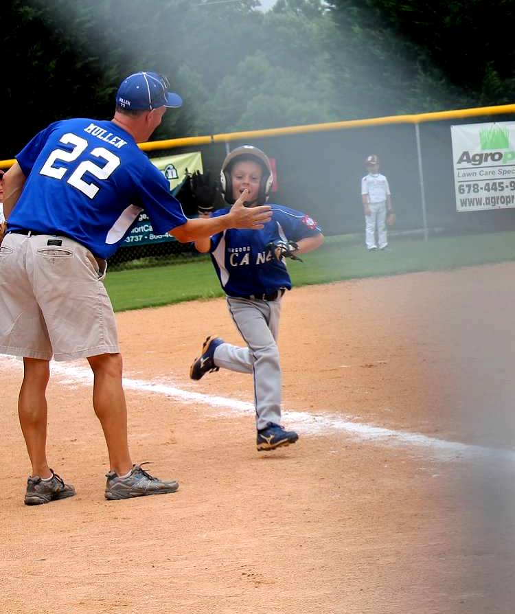 Dylan's high five from Coach/Dad after he sent one for a ride over the fence! WAY TO GO DYLAN!